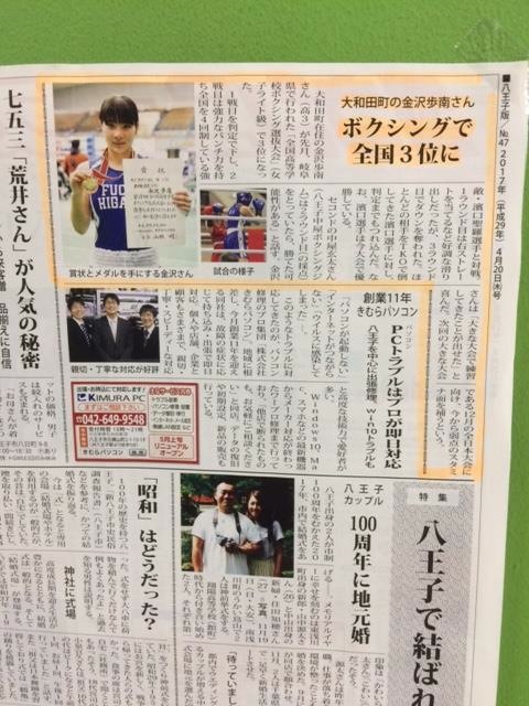 先日、岐阜県で行われた全国選抜大会で3位となった金沢歩南選手が取材を受け、『八王子版タウンニュース』さん記事を掲載して頂いております〜