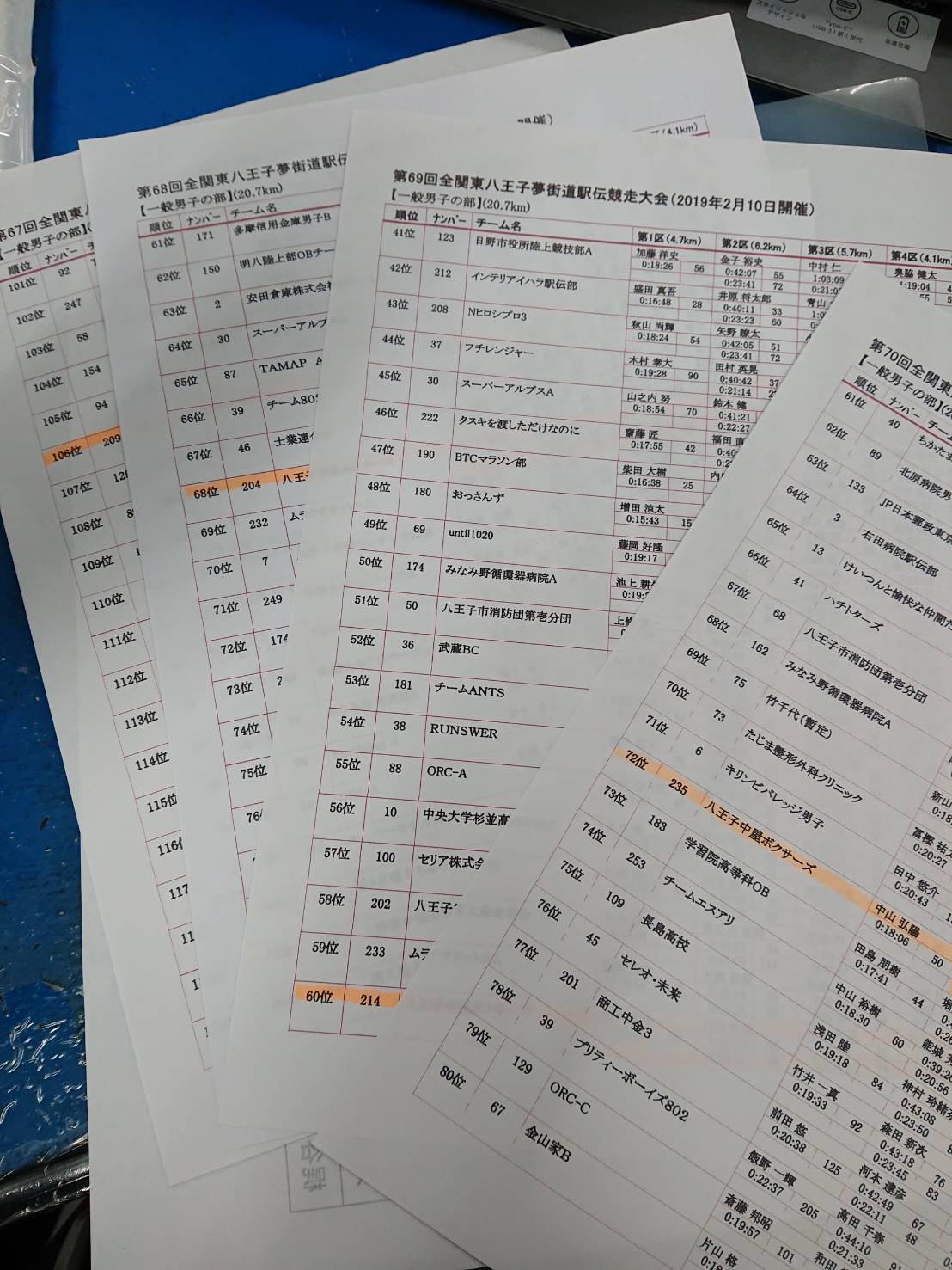 第70回全関東八王子夢街道駅伝競走大会結果