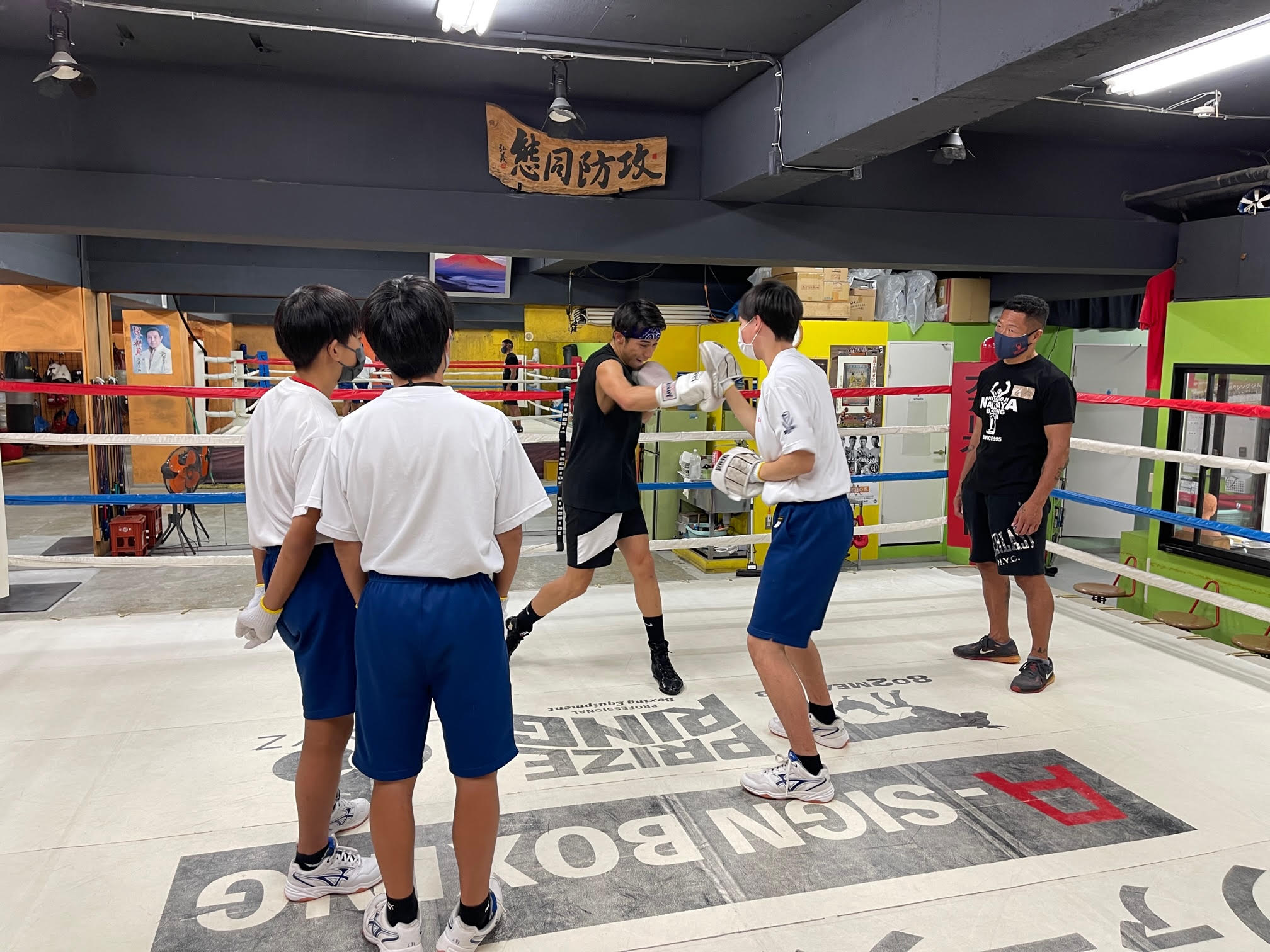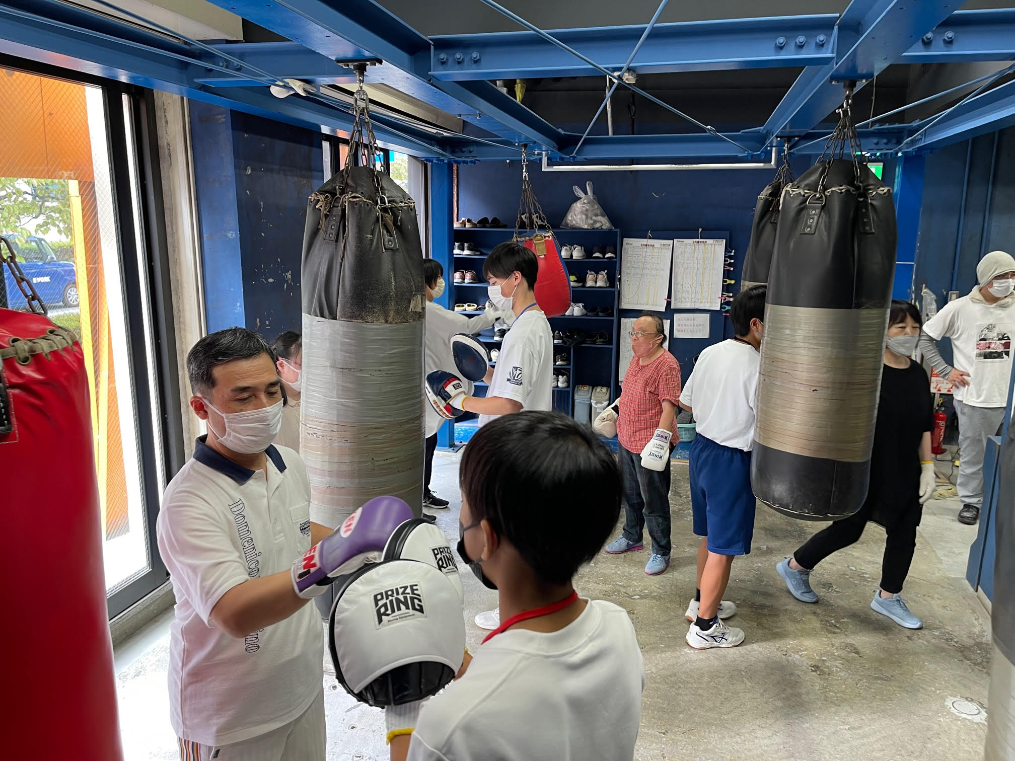 ボクシングジムのトレーナーのお仕事ということで、掃除から始まりミット持ちを体験しました。