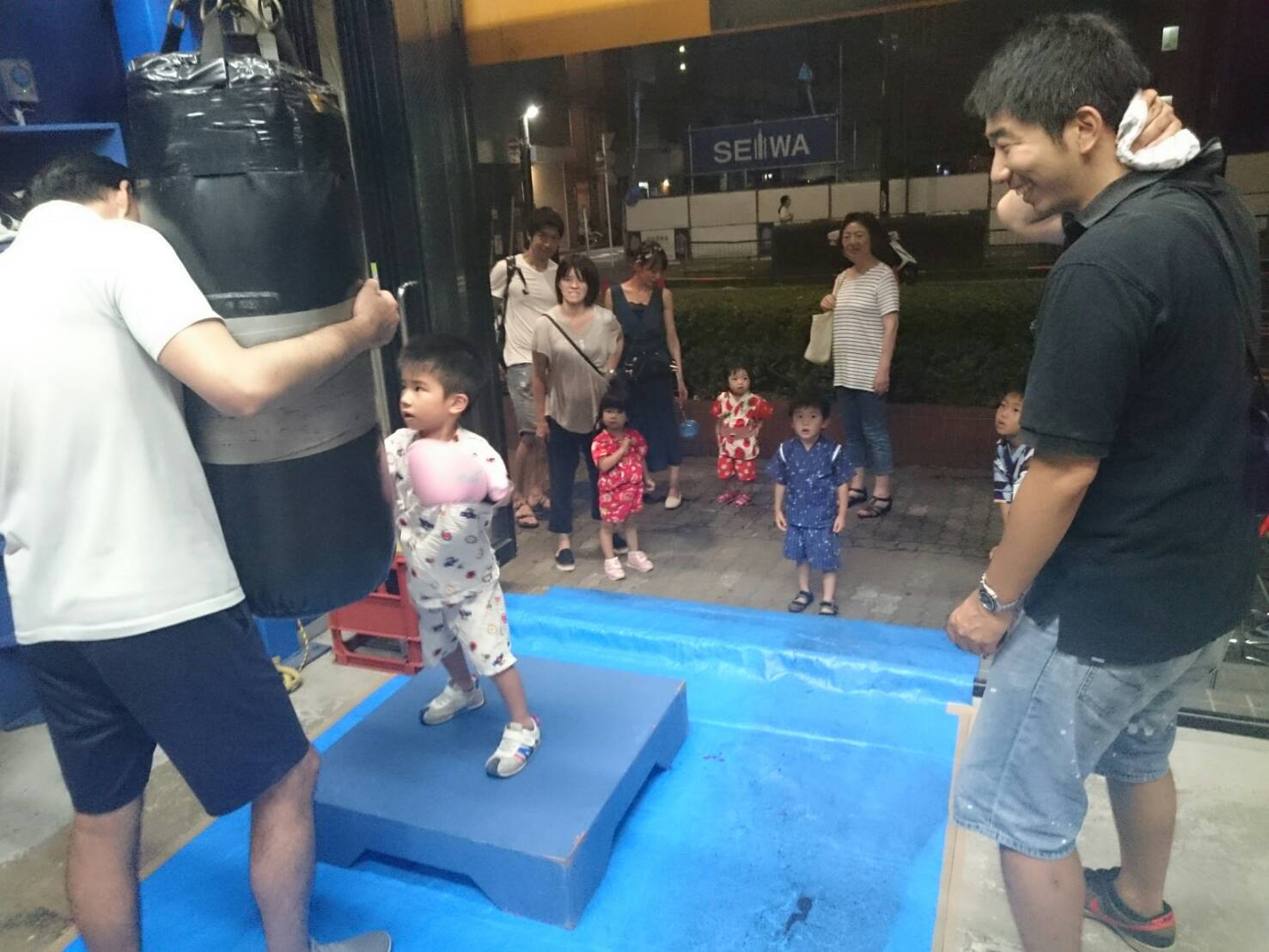 6日、八王子祭り初日、体験サンドバック打ちの様子